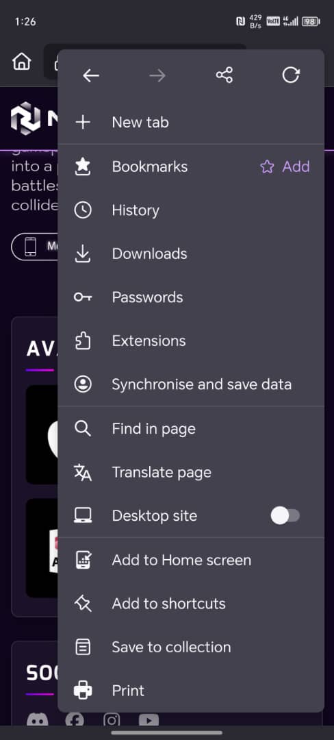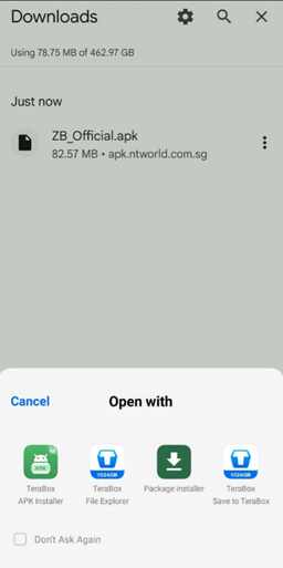 - If no pop-up appears, tap the three dots (menu icon) in your browser's top-right corner and select Downloads.
