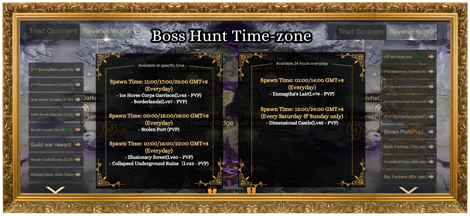 Spawn Time: 13:00/24:00 GMT+8 (Every Saturday & Sunday only)