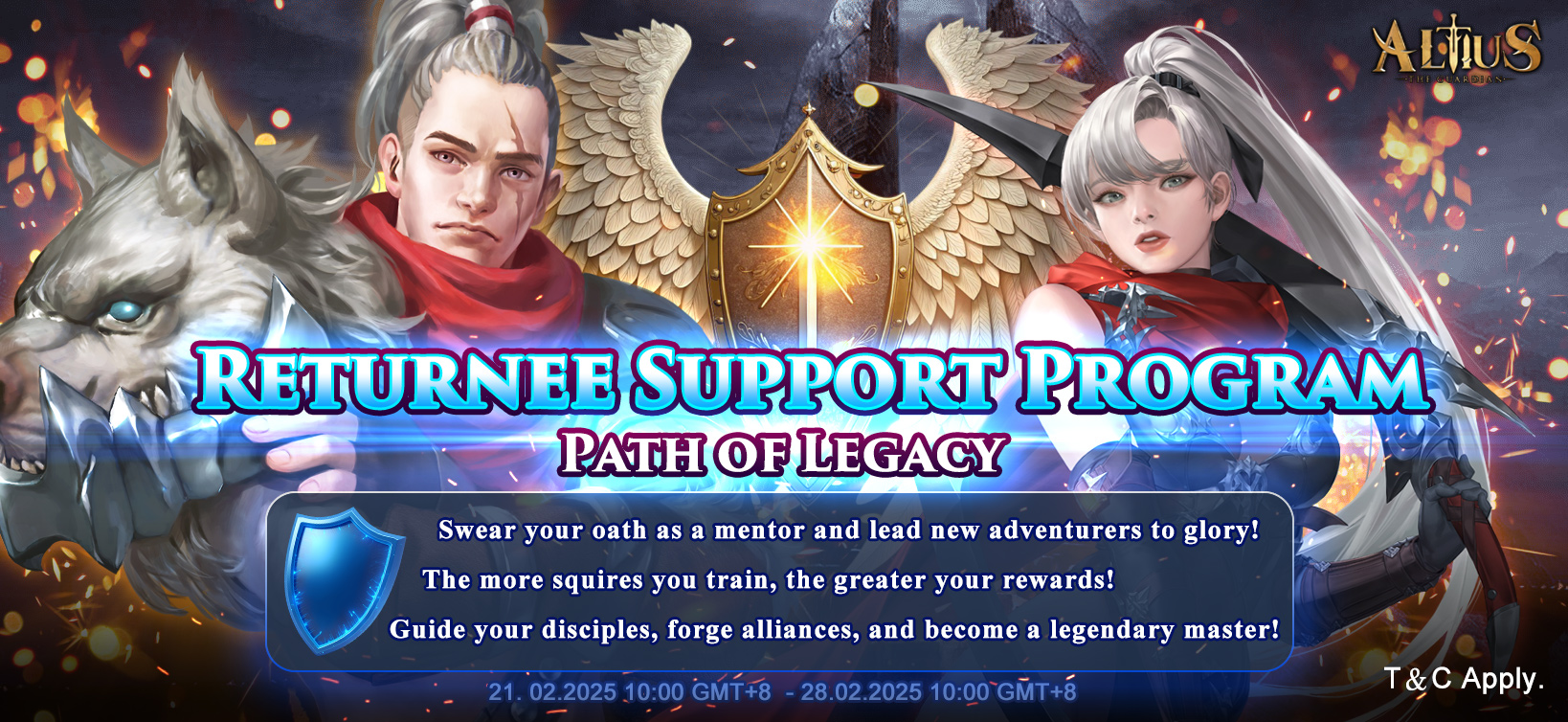 Attention, Returnees! It’s time to pass down your legacy and lead the next generation of warriors in Altius – The Guardian! The Path of Legacy – Returnee Support Program is here to reward veterans who guide new players through their journey. Bring in new recruits, help them grow, and both of you will earn exclusive in-game rewards! The Top 10 mentors with the most successful recruits will receive special grand prizes!