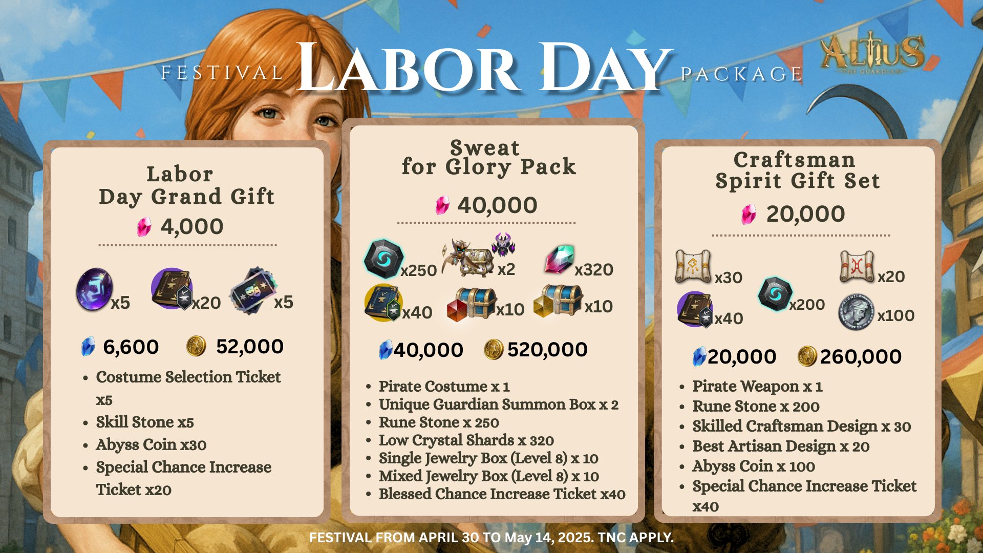 Take a well-deserved break and gear up for greatness with our Labor Day Festival Packages! We’ve prepared limited-time bundles filled with epic rewards to power up your journey in Altius. 💪⚔️
