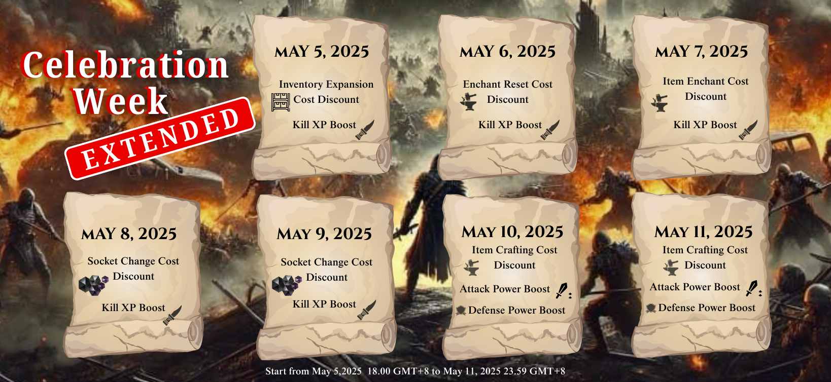From May 5 to May 11, enjoy even more boosts, discounts, and battle glory — across ALL servers!